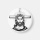 Portrait of Jesus Christ, the Son of God in a crown of thorns on his head with a cross in the background, a symbol of Christianity