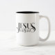 Coffee mug is shown in black and white with a Jesus is the way print.