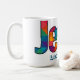 Coffee mug with Beautiful colorful geometric design of the name of "Jesus" loves you (personalize message or scripture or name). Great gift for Christians who love the Lord and are proud to be His. This mug is fun to give for religious celebrations, events and parties such as baptisms and summer BBQ's.