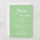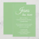 Anpassa denna inbjudan för att bjuda in vänner, familj och det lokala samhället till en påskgudstjänst. All den enkla moderna texten kan redigeras för din händelse. "Jesus har uppstått" skrivet med elegant vit stil lägger troinspiration till din påskinbjudan. Lägg till datum, tid och detaljer för påskfirandet. Perfekt för en påskgudstjänst i församlingen, en soluppgångsgudstjänst i kyrkan, en påskfirande, en firande av uppståndelsedagen, en påskbrunch i kyrkan, måltid eller gudstjänst. Lägg till kyrkans eller evenemangets adress, telefonnummer, webbplats och kontaktinformation efter behov. Den solida pastellgröna färgen är tagen från mitt vårblomfotografi. Se min inspir