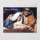 En vacker bild av Jesus i krubban med Maria och Josef som tittar på honom. Detta vykort skulle vara perfekt att skicka till vänner och nära och kära.