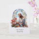 This elegant personalized sympathy card features a serene stained glass image of Our Lord Jesus admiring a delicate bouquet of wildflowers. Rendered in soft pastel shades of blue, white, and pink, the artwork evokes peace, hope, and gentle remembrance during times of loss.
