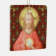 I denna fantastiska bild är Jesus klädd i ett mjukt rödplagg som fångar öga. Det är Maundy eller Heliga Torsdag och hans sista talare med sina apostlar. Det är den tidpunkt då han inrättar en helig Heliga Communion eller Eucharist. + Jesus figur isoleras mot en mörk röd bakgrund med stiliserade kronärtskockor i diamantform. Stämningen här är högtidlig. När Jesus lyfter ögon till himlen tar han upp sin höger hand i välsignelse. I sin lämnat håller han upp en stor värd, Eucharistiskt bröd. Denna detalj syns inte: Kalisen fylld med vin står på ett bord som är inställt för Pesach och täckt av ett blått och vitt plaid trasa. På latin - i en banderol under scenen - är orden av konsekration: "Detta är min kropp... detta är mitt blod" ("Hoc est corpus meum.. Hic est sanguis meus"). + I minnet av Jesus, vid varje mässa, reagerar prästen denna helig-åtgärd genom att förvandla vanligt bröd och vin till Kristus kropp och blod. + Image Kredit (SAU 045): Närmare uppgifter om ett antika devotional print of Jesus Instituting the Heliga Eucharist, som ursprungligen publicerades i kromolitografi av Socièté de St. Augustin, Bruges, Belgien, i slutet av 1800-talet, från designerns privata insamling av religiösa ephemera.