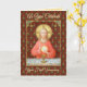 För 1:a kommunikanter + I denna fantastiska bild sitter Jesus i ett bord som är inställt för Pesach och täckt av ett blått och vitt plaid trasa. Han är klädd i ett öga-fångande, mjukt rödplagg. Det är Maundy eller Heliga Torsdag och hans sista talare med sina apostlar. Det är den tidpunkt då han inrättar en helig Heliga Communion eller Eucharist. + Jesus figur isoleras mot en mörk röd bakgrund med stiliserade kronärtskockor i diamantform. Stämningen här är högtidlig. När Jesus lyfter ögon till himlen tar han upp sin höger hand i välsignelse. I sin lämnat håller han en stor värd, Eucharisbrödet, över den häst som fyllts med vin. På latin - i en banderole under scenen - är orden av Consecration: "Detta är min kropp... Detta är mitt blod" ("Hoc est corpus meum.. Hic est sanguis meus"). Till minne av honom reagerar prästen i varje mässa på helig och förvandlar vanligt bröd och vin till Kristus kropp och blod. + Image Kredit (SAU 045): Antique devotional print of Jesus Instituting the Heliga Eucharist, ursprungligen publicerad i kromolithography by the Socièté de St. Augustin, Bruges, Belgium, late 1800, from the designer's private Collection of religiösa ephemera.