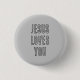 Du kan anpassa den här "Jesus Kärlek You"-knappen skriven i ett modernt svart skript på coolans grått-bakgrund. Den här enkla kommandoknappen trendig kan anpassas med namn eller andra nyckel ord. Det skulle vara en underbar gåva till bus eller godis eller halloween eller påsk. Det är avsett att uppmuntra barn och vuxnor som de är älskade av sitt himmelska Far med ett yttre kärlek. Se andra utformningar i denna samling för kristna uttryck och religiösa ord. Underbar för en kristen kyrka eller religiösa.
