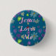 Jesus Kärlek Me Blommigt Blue Knapp
