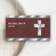 Kyrpastoriserat affärskort med metalliska stålaccenter med modern typografi. Lägg till ditt namn och kontaktuppgifter för att göra ett varaktigt första intryck.