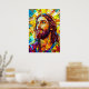 Glaskonst av Jesus Kristus med söt påskhare och pulserande påskägg. Utplåna kanindjur för att återuppväcka den kristna religionen. Glad påsk! Vibrant Påsk Poster.