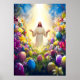 Glad påsk med denna pulserande helgdag-dekorator som har jesuschist, vibrerande påskägg och blommigt för återupplivningsscenen.
