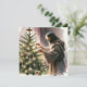 Religiös julkort. En AI-illustration i akvarellstil av Jesus Kristus som sätter prydnader på en gran utsmyckad med ett kors på toppen. Lukasevangeliet 2:11 "I dag har en Frälsare fötts åt er i Davids stad, han är Messias, Herren".