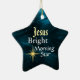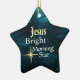 Den stjärnformade julprydnaden har Jesus Bright MorgStar på en vacker blå abstrakt. Du kan anpassa utsmyckningens baksida med valfri information.