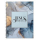 This notebook is shown with a Jesus is the way print and is shown in an ink abstract print in a multi colors blue and grey.