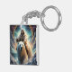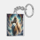 Kristna Faith Jesus sitter på en polar med vitt vinter-skäggigt långt hår och skägg.Ut i snö, där de vita björnen lämnas med hand. Upp i glaciärberget. Med snö och en stark stjärna på natten himlar. På det här artificiella underrättelsefotot.