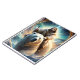 Kristna Faith Jesus sitter på en polar med vitt vinter-skäggigt långt hår och skägg.Ut i snö, där de vita björnen lämnas med hand. Upp i glaciärberget. Med snö och en stark stjärna på natten himlar. På det här artificiella underrättelsefotot.