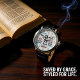 En häpnadsväckande bild av Jesus som krossas på kor, skild i ett skuggande guld färg. Figur är högtidligt och uttrycksfullt och visar upp kraftfulla bilder som förknippas med uppoffring och inlösen.
