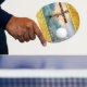 Jesus som hänger från en kristen crucifixionkor pingisracket