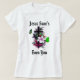 Jesus Sparas t-Shirt har anpassade text som du kan ändra om du vill och den har en vintage foto av ett kor med blommor på det och en grönt och en regnbåge som flyger runt utsidan av kor. Du kan byta färg till vad du vill att skjortan ska vara