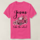 Jesus Ta Hjulkonstruktionen har en pulserande leopard och blommigt tryckt i rosa hues och visar en bil med den ikoniska frasen "Jesus ta hjulet" som är sammanflätad i konstruktionen.