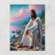 Denna seriösa bild av Jesus fångar upp ett lugnt ögonblick av övervägande av ett fredligt kusten. Han är klädd i flytande plakat och sitter tanklöst på bergig terräng och ser vid den vibrerande horisonten, färgad med nyanser av rosa och guld. Det milda vinkara och tåliga landskapet skapar en harmonisk bakgrund som symboliserar både styrka och lugn. Hans uttryck utstrålar visdom och medkänsla och uppmanar tittarna att reflektera över tro, fred och skönheten i gudomligt skapande. Bilden är en tidlös påminnelse om Kristus roll som en källa till komfort, vägledning och förnyelse av andlig för alla som söker sin närvaro.