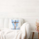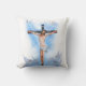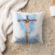 Jesus på kor med fåglar Pillow har Jesus med sin arm inkapslad i kor och han har en loinklot på sig. Detta är ett vintage foto från tidigt 1900 som du kan ändra ljusblått bakland till vilken färg du vill att det ska vara