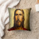 Jesus Vintage Pillow. Har Jesus med öga tittar rakt på dig. Med vit och röd utrustning på.Det här är ett vintage-foto från tidigt 1900 kan du ändra bakgrunden till valfri färg.