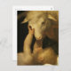 Vacker bild av Kristusbarnet i sin krubba när han sträcker sig efter att röra vid ansiktet på ett lamm.