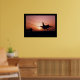 Poster med ett fotoutskrift av en solnedgång med landning av jet. Anpassa det här objektet eller köp som det är. com