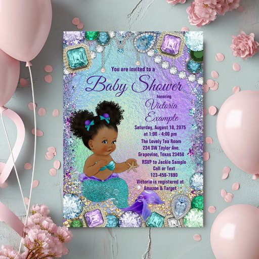Jewel Sjöjungfru Afro Hair Baby Shower Inbjudningar