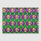 smycken, bakgrund på Mardi Gras av lila och grönt rhombus, dekorerade guld lilies.