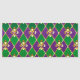 smycken, bakgrund på Mardi Gras av lila och grönt rhombus, dekorerade guld lilies.