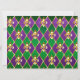 smycken, bakgrund på Mardi Gras av lila och grönt rhombus, dekorerade guld lilies.