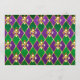 smycken, bakgrund på Mardi Gras av lila och grönt rhombus, dekorerade guld lilies.