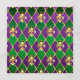 smycken, bakgrund på Mardi Gras av lila och grönt rhombus, dekorerade guld lilies.