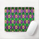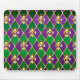 smycken, bakgrund på Mardi Gras av lila och grönt rhombus, dekorerade guld lilies.
