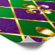 smycken, bakgrund på Mardi Gras av lila och grönt rhombus, dekorerade guld lilies.