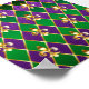 smycken, bakgrund på Mardi Gras av lila och grönt rhombus, dekorerade guld lilies.