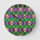 smycken, bakgrund på Mardi Gras av lila och grönt rhombus, dekorerade guld lilies.