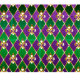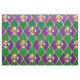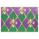 smycken, bakgrund på Mardi Gras av lila och grönt rhombus, dekorerade guld lilies.