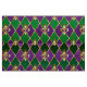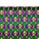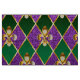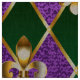 smycken, bakgrund på Mardi Gras av lila och grönt rhombus, dekorerade guld lilies.