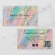 Customize this stylish and creative "Jewelry Opal Brush Gold QR Code Social Media Business Card", featuring a sophisticated faux opal and gold brush stroke background. Personalize with your full name in a beautiful modern script, professional title, contact information, social media username, and address. QR code and social media icons (Instagram and Facebook) are thoughtfully integrated, making it easy for clients and colleagues to connect with you digitally. Perfect for professionals who value style and functionality in their branding. Please get in touch with the store designer for further customization if needed.