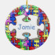 Färgfull pussel med mönstrad bakgrund med vit pussel biet för att anpassa sig med namn på alternativa barnens julprydnad.