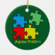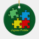 Jigszle Puzzle Biet Design Ceramic Ornament med anpassadets bakgrund färg och text.