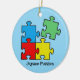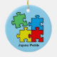 Jigszle Puzzle Biet Design Ceramic Ornament med anpassadets bakgrund färg och text.