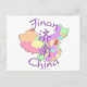Jinan i provinsen Shandong på ett färgat karta i China innehåller de kinesiska symbolerna för "Jinan" och dess placering är märkt på karta med ett hjärta och flagga. En roligt, en unik gåva! Designad av Hendrika of RedThreadMaps.com