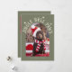 Cute och lustigt julfotopatkort för helgdag till hundägare med texten "Jingle Bell Tassar" med ett foto av din hund. Bakgrunden är sage grönt.