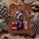 Cute och lustigt julfotopatkort för helgdag till hundägare med texten "Jingle Bell Tassar" med ett foto av din hund. Bakgrunden är terracotta.