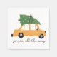 Denna konstruktion visar en gult som transporterar en Julgran som är bunden till tak och omgiven av fallande snöflingor. Bilen har lappar av snö på den, vilket ökar den mysiga vintern. Under bilen skrivs frasen "jingle all the way" i ett lekfullt handskrivet teckensnitt.