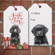 På ena sidan av denna julklapp är märkrn en vacker bild av en svart hund i Pudel. Paket står inför honom. Den stiliserade röda texten ovanför bilden säger "Jingle all the Way". Baksidan av märkrn har en annan bild av en valp i Pudel och anpassningsbarna. Se till att du kan välja mellan gåvor och presenter från Pudel Helgdag i vår butik.