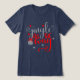 Jingle All Way God Jul Klockor Manar Womens T-Shirts har texten "Jingle hela vägen" i silver och röd typografi som dekoreras med silver stjärnor och klockor. Perfekt för familj och vänner till jul och helgdagar. Skapat av Evco Helgdagars www.zazzle.com/store/evcoholidays