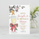 Bjud in gästerna att fira säsongen med denna charmiga Jingle & Mingle julcocktailparty-inbjudan. Med en festlig akvarell champagneglas insvept i en röd och grön slinga, järnekblad, mistel, bär och en söt pepparkaksaccent, ger denna design den perfekta blandningen av elegans och julstämning.